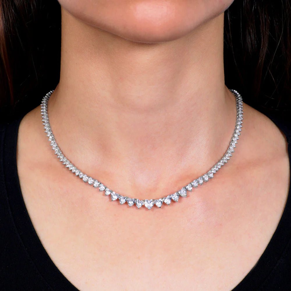 Amen Zirkonia Heart Tennis Silberhalskette 925 Sterling Silber