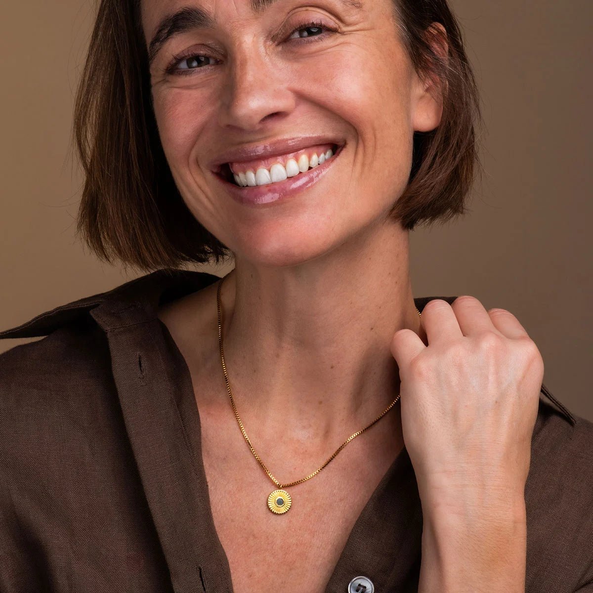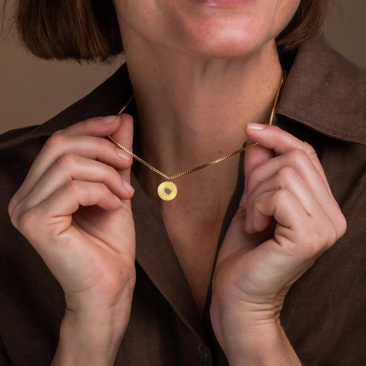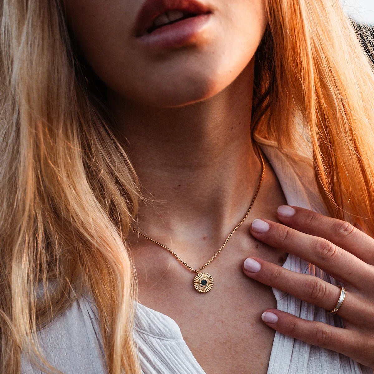 Die Stencil Halskette ist dein persönliches Manifest für Stärke und Individualität. Das kompakte, kreisrunde Schmuckelement mit einem Durchmesser von 14 mm wurde aus hochwertigem 316L Edelstahl gefertigt und mit einer luxuriösen 24k Echtgold-Plattierung veredelt. Dieser strahlende Rahmen umschließt das Herzstück der Kette wie eine Sonne: eine Einlage aus echtem grünem Marmor. Wie ein Graffiti an einer alten Stadtmauer ist jedes Marmor-Inlay ein Unikat. Mit tiefgrünen Strukturen und Mustern, die so einzigartig sind wie deine eigene Handschrift. Die feine Gliederkette lässt sich in der Länge von 400 bis 450 mm perfekt anpassen und sorgt dafür, dass das goldene Emblem genau dort sitzt, wo es am meisten Eindruck hinterlässt. Die Kombination aus dem "urbanen" Marmor und dem edlen 24-karätigen Gold erinnert daran, dass wahre Schönheit oft in den Kontrasten liegt. Die Stencil ist eine tägliche Erinnerung: Trau dich, laut zu sein, trau dich, Farbe zu bekennen, und hinterlasse deinen eigenen Abdruck in der Welt.