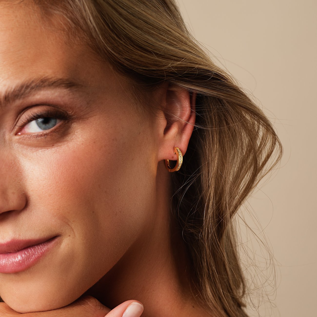 Die Schmuckkollektionen der Designerin Jette Joop versprühen kraftvolle, innovative und internationale Designästhetik. Die Ohrringe aus der Endless-Kollektion sind hierfür ein perfektes Beispiel: runde Ohrringe aus 18 Karat vergoldetem Sterling Silber, besetzt mit filigranen Zirkonia in einer Pavé-Fassung, glänzen um die Wette und komplimentieren jede noch so glamouröse Garderobe. Mach dich unsterblich in Bezug auf deine Outfit-Möglichkeiten und nicht zuletzt deiner wohlverdienten Selbstliebe.