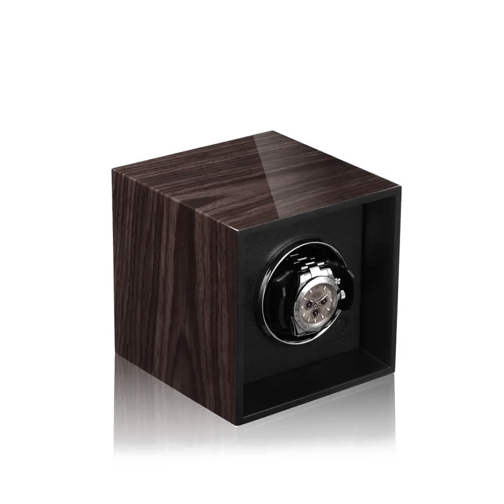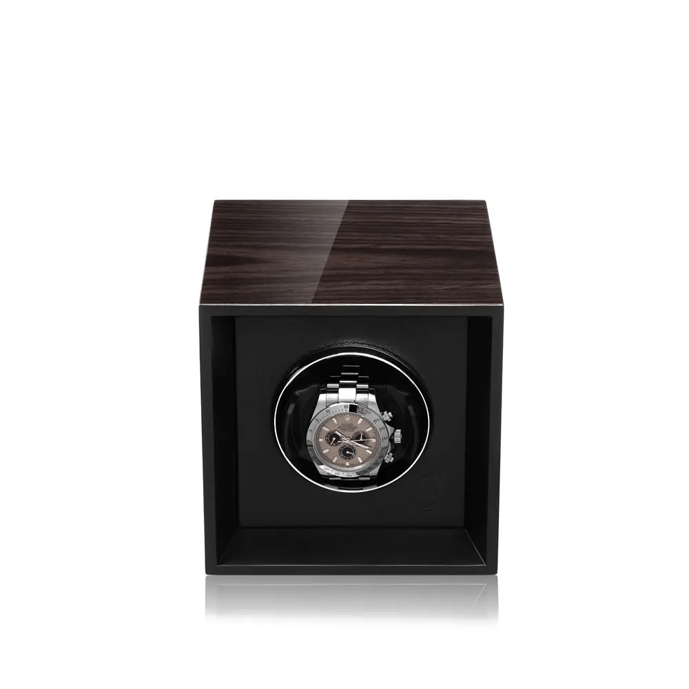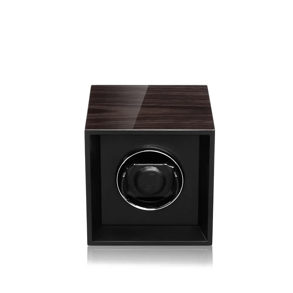 Das Design der Impress-Kollektion ist nicht nur modern, sondern auch funktional. Durch die kubische Form entsteht ein modulares Baukasten-System, mit dem du deine Sammlung an Uhrenbewegern individuell anpassen und erweitern kannst. In Klavierlack aus Makassar-Dekor präsentiert sich der Korpus für eine Automatikuhr aus Massivholz mit einem schwarzen Velours-/Feinsynthetik-Innenleben. Mittels Drehregler kannst du eins der 5 wählbaren Programme (linksdrehend, rechtsdrehend, alternierend) auswählen. Ob du den Beweger per 5 Volt Netzbetrieb oder via Batterieversorgung nutzen möchtest, bleibt dir überlassen. Zusätzlich bietet der Impress ein USB-Ladepanel, mit dem du Endgeräte laden, oder alternativ weitere Beweger anschließen kannst. Ein kleiner Teil deutscher Ingenieurskunst für das große Ganze in deinem Kleiderschrank.