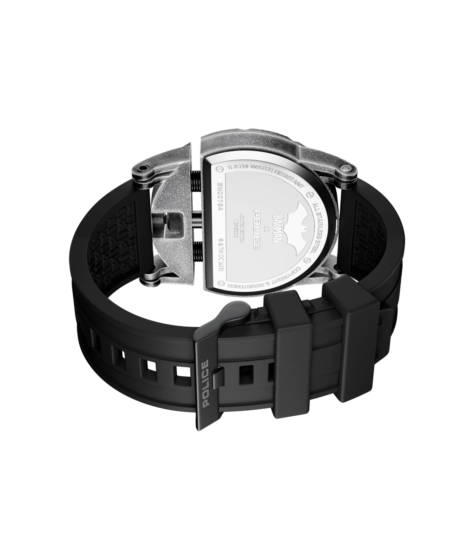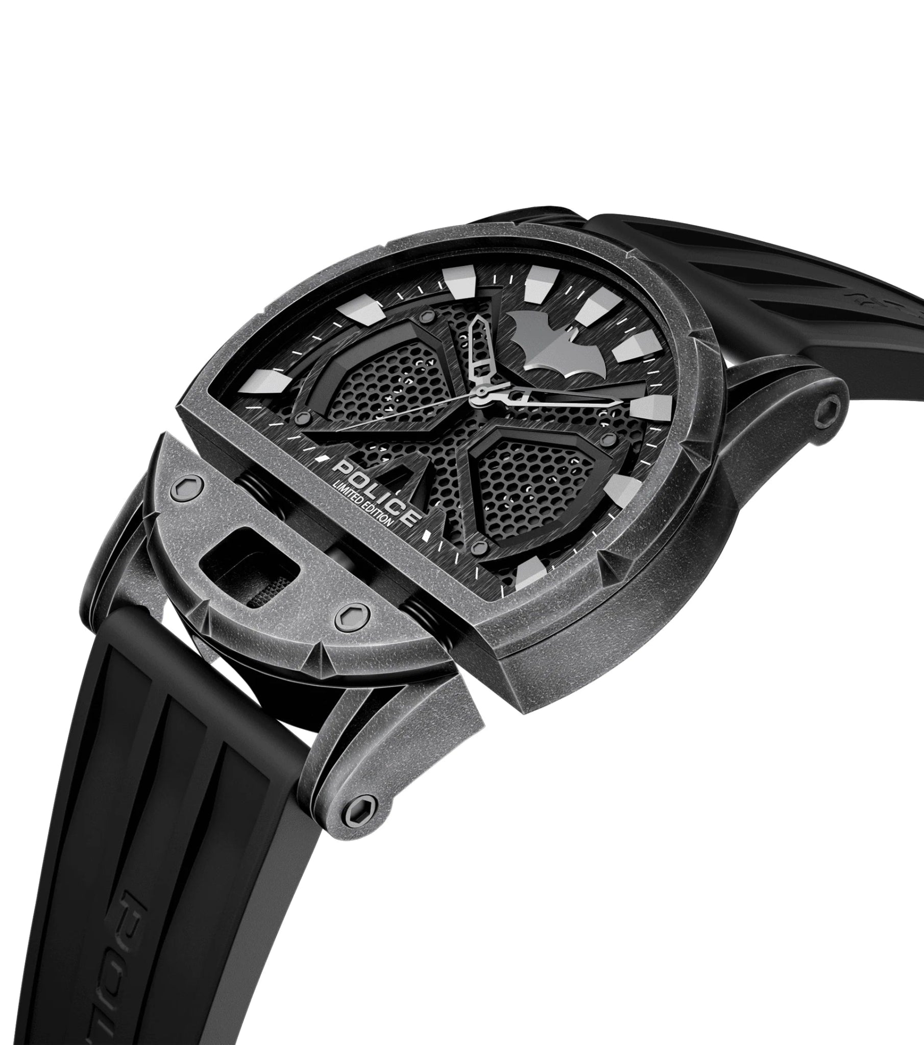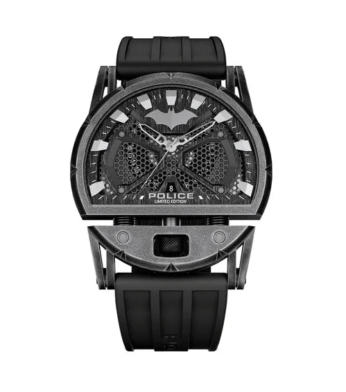 Man könnte versuchen, dieses Design-Objekt gebührend zu beschreiben, aber das würde der Uhr nicht gerecht werden. Alles daran schreit: Steam-Noir Dystopie. Hol dir das Batsymbol direkt ans Handgelenk mit der limitierten Herrenuhr der Marke POLICE. Das dreidimensionale Zifferblatt spricht eine deutliche Sprache und die Fledermaus prangt auf der Zwölf. Ein hochwertiges Quarzwerk bietet dir eine zuverlässige Uhrzeitangabe und die Druckresistenz von 5 ATM schützt den Zeitmesser vor Wasserspritzern. Ein schwarzes Silikon-Armband bricht mit dem antiken Gunmetal des Gehäuses und nimmt dem Zeitmesser etwas an Härte, aber unterstreicht die düstere Funktionalität, die dem schwarzen Rächer seit jeher innewohnt.