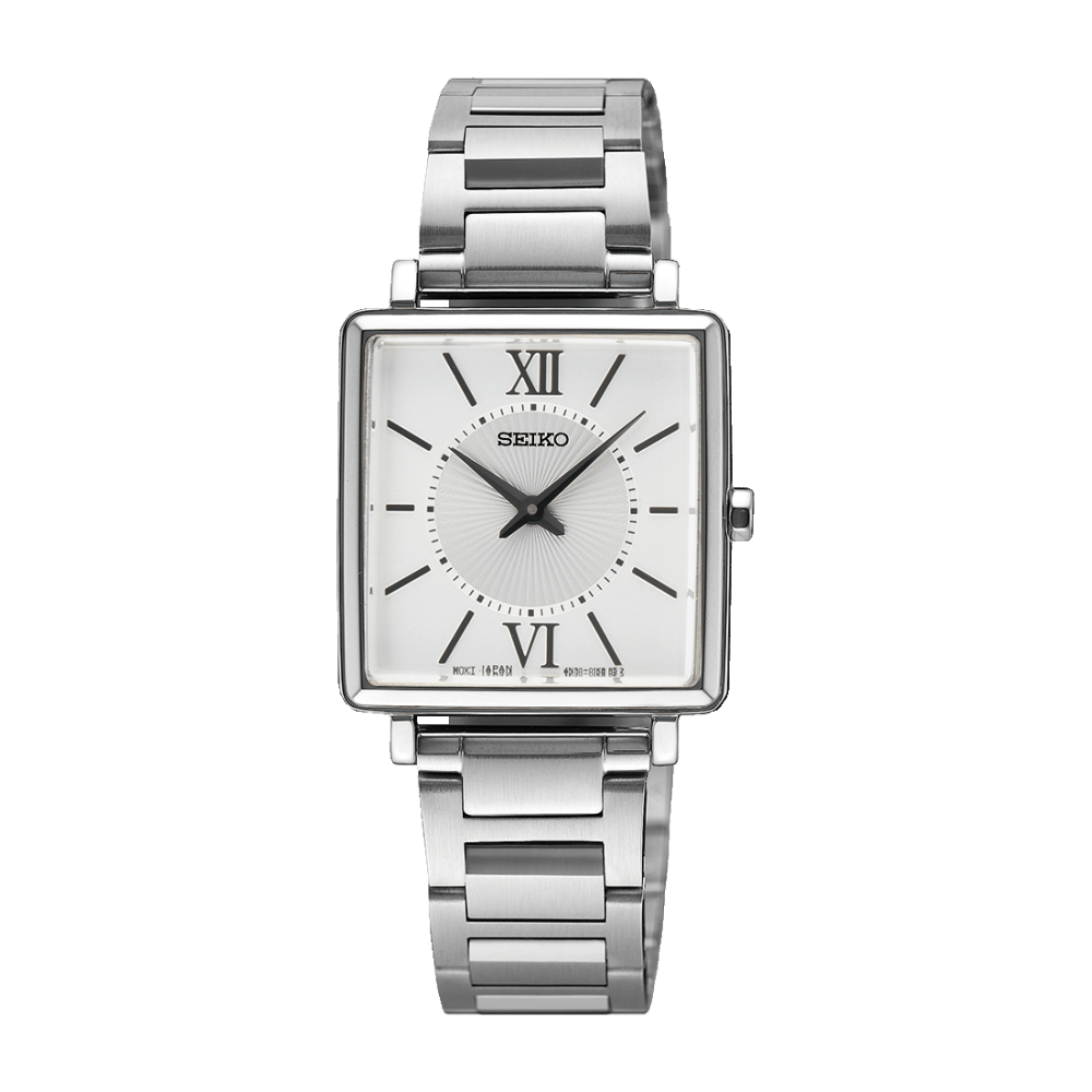 Eine wunderschön gestaltete Armbanduhr, die garantiert eine großartige Ergänzung für die Auswahl an Accessoires einer jeden Frau sein würde. Diese Armbanduhr hat ein silberfarbenes, quadratisches Edelstahlgehäuse, die diesem tollen Accessoires einen einzigartigen und vornehmen Look verleiht. Gefertigt wurden sowohl Gehäuse, als auch Gliederarmband aus hochwertigem Edelstahl, was perfekt mit dem silberweißen Zifferblatt harmoniert, das für den extra Retro-Look mit römischen Ziffern versehen wurde. Bist du auf der Suche nach dem Gewissen etwas? Dann ist dieser Zeitmesser von Seiko mit dem extravaganten Vintage-Design genau das Richtige für dich.