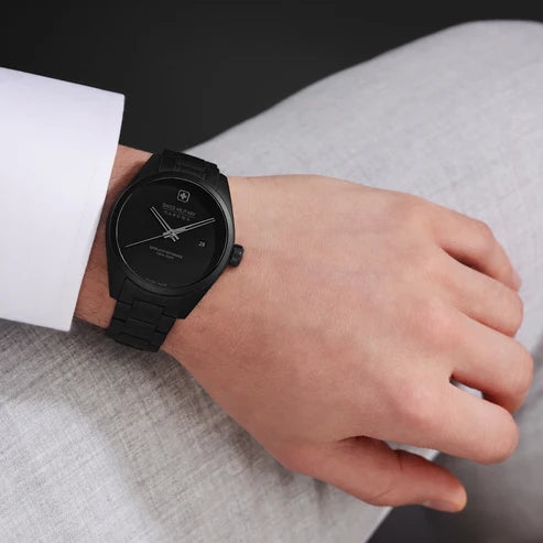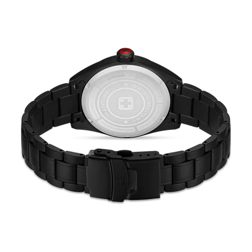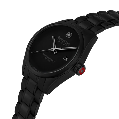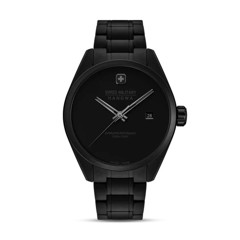 Um Veränderungen herbeizuführen, muss man kompromisslos nach vorne gehen. So wie es Swiss Military bei dieser reduzierten Businesswatch getan hat. Die Pioneer STEALTH ist eine Armbanduhr, die sowohl zurückhaltend, robust, als auch elegant ist. Im unsichtbaren Stealth-Mode tarnt sich die Uhr komplett in mattem Tiefschwarz. Um auch anderweitig keine Ablenkung zuzulassen, wurde auf Indices und Ziffern verzichtet. Edelstahlgehäuse mit Edelstahlarmband sowie ein Datumsfenster auf der Drei komplettieren die Ästhetik der Automatikuhr, die über ein hochwertiges Quarz-Uhrwerk verfügt. Sie wurde zudem in der Schweiz gefertigt und kommt mit einer 5-Jahres-Garantie der Herstellerfirma daher. Diese Armbanduhr ist perfekt für diejenigen, die Pionierskunst zu schätzen wissen.
